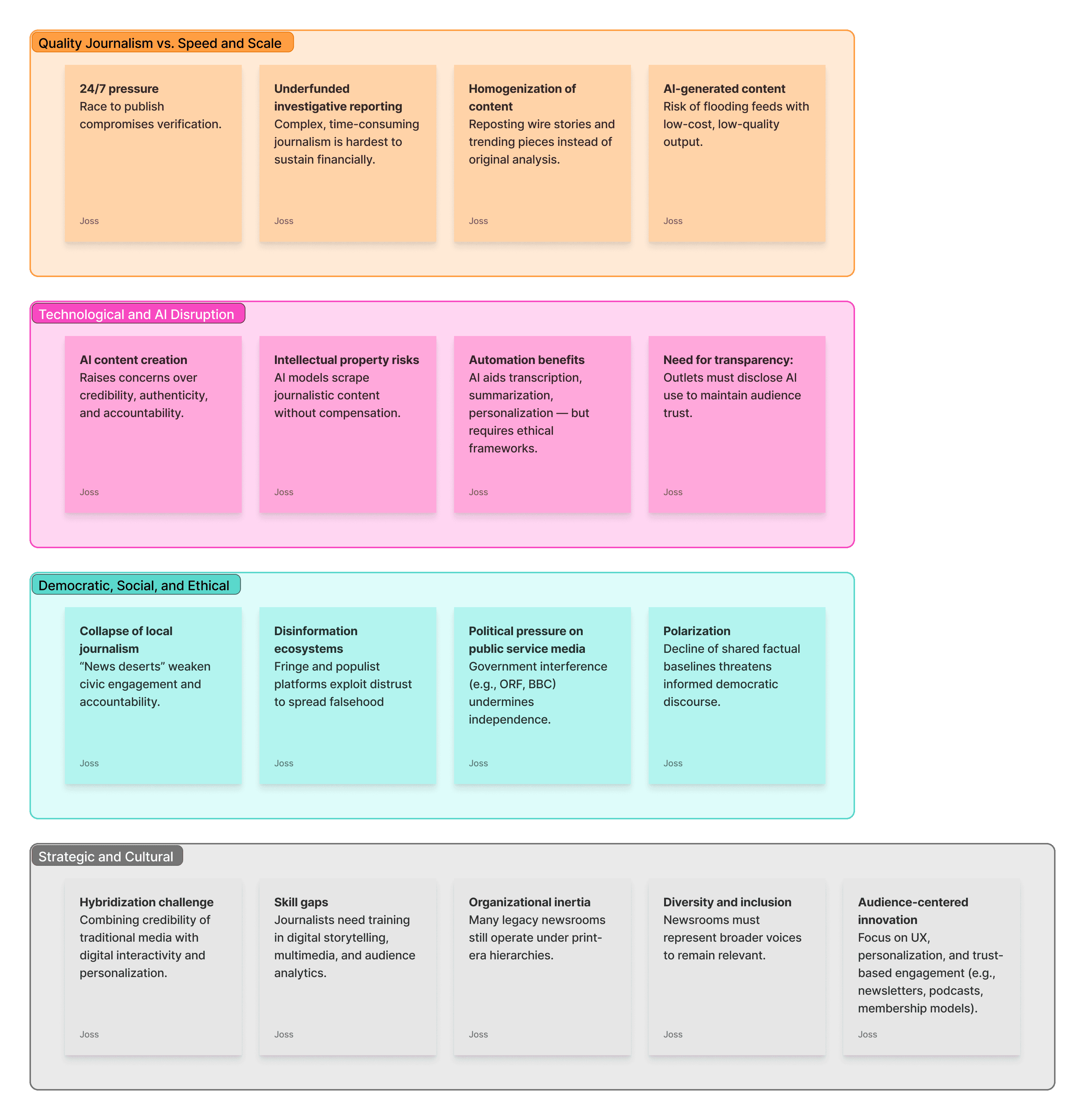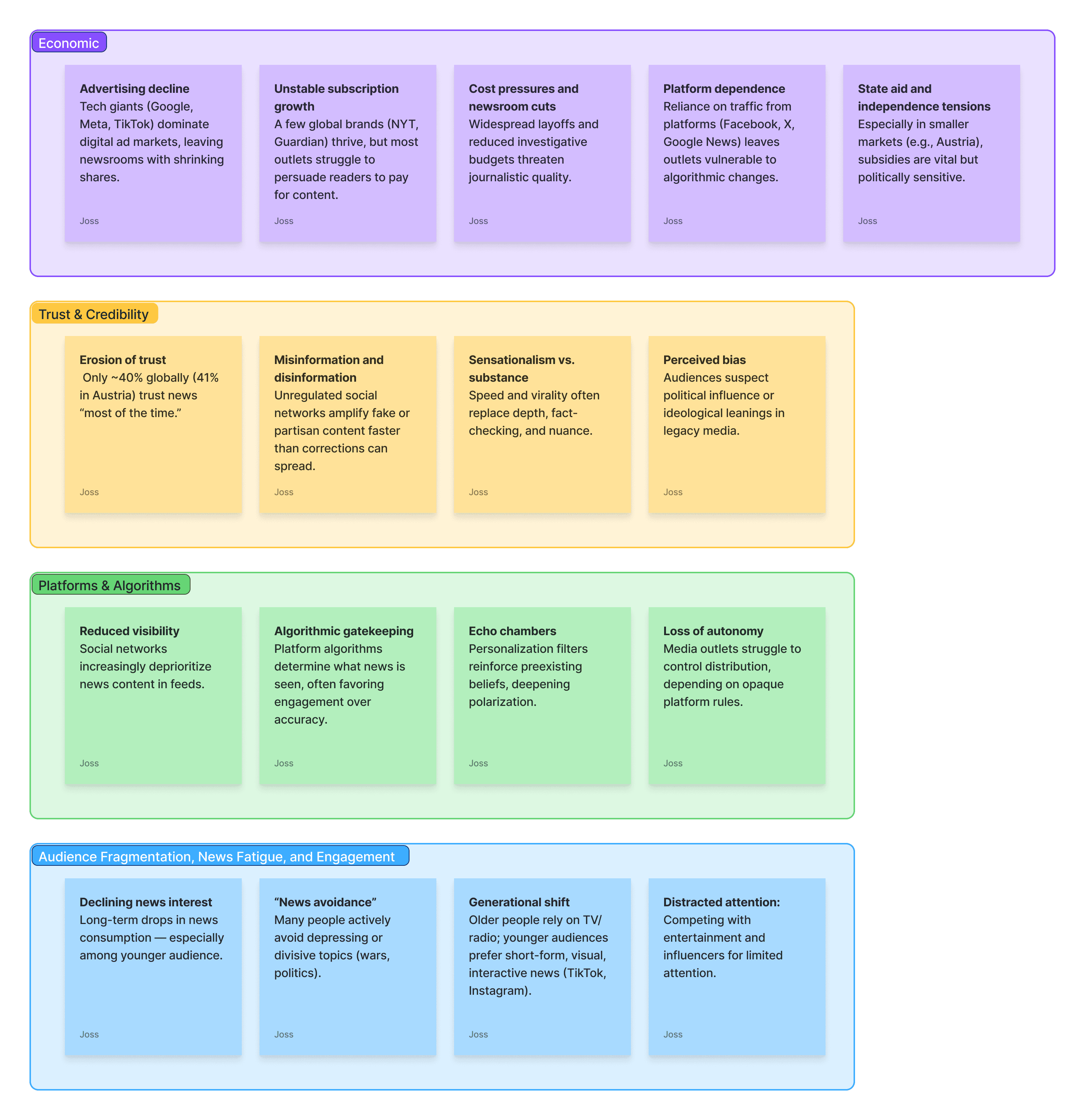 I have studied the challenges facing modern media companies in depth and analysed multiple scientific reports. I then weighted my analysis according to strategic considerations and focused on the topic of 'news fatigue'.