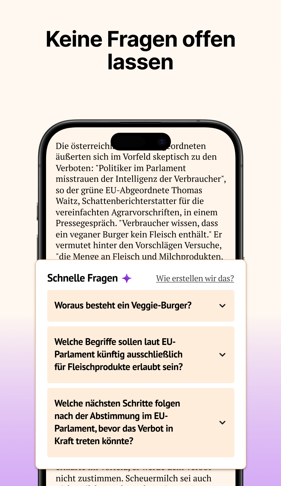 Eine Möglichkeit schaffen informiert zu sein, ohne das Gefühl zu haben von der Quantität und Frequenz der Nachrichten regelrecht erschlagen zu werden. Den Spagat zu schaffen moderne Technologien, wie KI sinnvoll einzusetzen, ohne das Vertrauen der Leser:innen in Qualitätsjournalismus aufs Spiel zu setzen. Das Nachrichtenerlebnis an die individuellen Bedürfnisse der Menschen anzupassen.